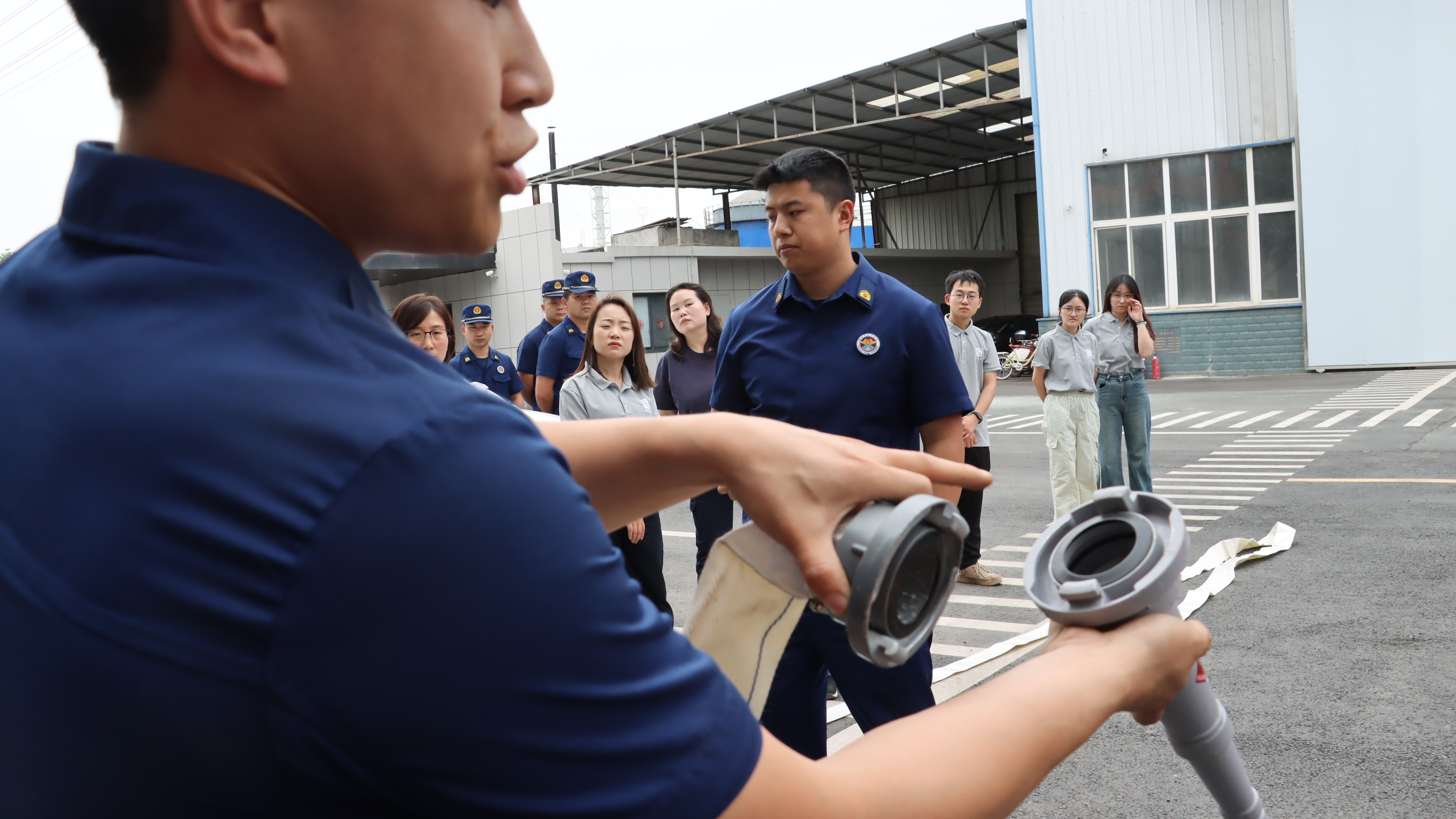 待演練結(jié)束后,消防教官現(xiàn)場(chǎng)開展滅火器以及消防水帶使用教學(xué)。從知道到做到,消防技能再升級(jí)!