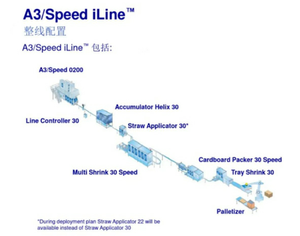 A3 高速線的設(shè)計(jì)理念是高度一體化和高度自動(dòng)化,旨在降低運(yùn)營(yíng)成本并提高生產(chǎn)效率。實(shí)現(xiàn)了灌裝機(jī)與分銷設(shè)備的一體化,提升了整體性能和易用性,最快灌裝速度可達(dá)每小時(shí)24,000包。